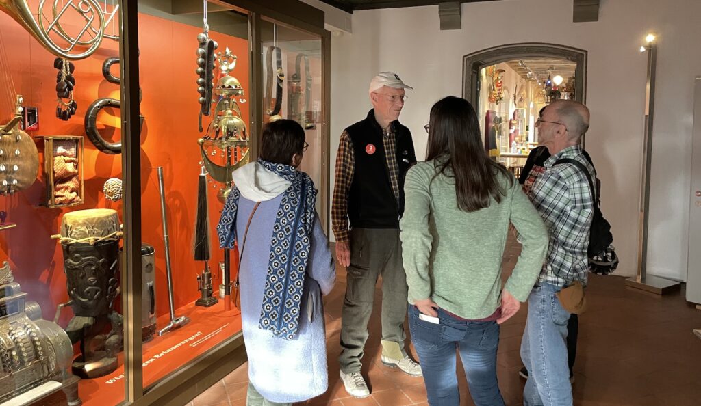 Das Angebot findet jeweils am ersten Mittwoch im Monat statt. Menschen, die gern Deutsch üben möchten, sind eingeladen, in Kleingruppen und mit einer/einem freiwilligen Mitarbeitenden das Museum zu besuchen. Unterwegs entsteht ein lebendiger Austausch auf Deutsch, angeregt von den vielen Objekten und Geschichten im Museum.
